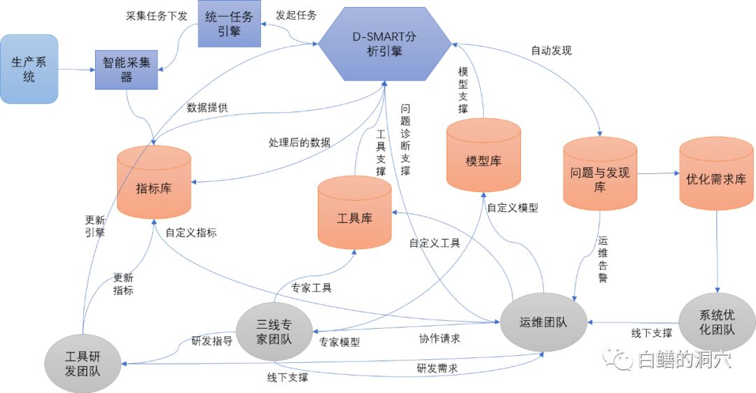 第一种是从20多年前网管平台开始就贯彻的一种建设思路,首先建立一个运维自动化平台,然后向这个平台中灌输知识,加入各种监控指标,加入基线进行监控与预警,同时提供大量的工具,用于辅助运维工作。