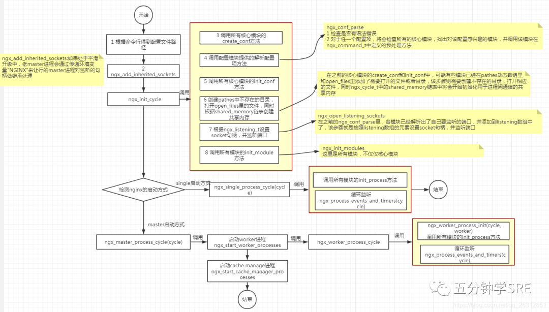 Nginx默认以守护进程daemon方式启动,默认采用多进程方式。Nginx包括两种类型的进程:- Master 进程,数量只有一个,管理Nginx本身和Worker进程- Worker 进程,数量一般和CPU核数相等,Nginx的所有请求处理,均是在Worker进程中完成
