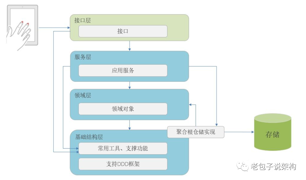 从上述架构特点可以看出,聚合根的仓储与领域逻辑完全解耦,是通过应用服务层的用例将他们协调起来完成功能。