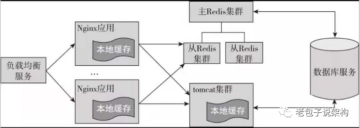 一个使用了Redis集群和其他多种缓存技术的应用系统架构如图所示