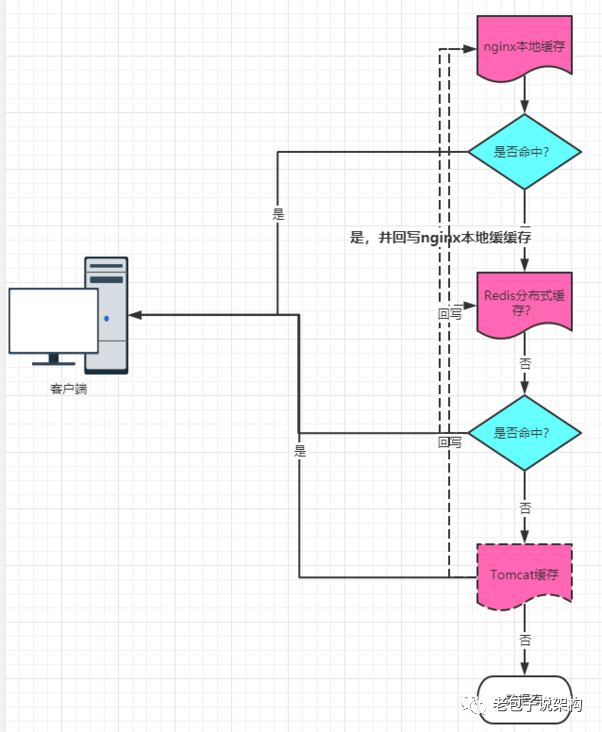 如果Nginx应用服务器的本地缓存没有命中,就会进一步读取相应的分布式缓存——Redis分布式缓存的集群,可以考虑使用主从架构来提升性能和吞吐量,如果分布式缓存命中则直接返回相应数据,并回写到Nginx应用服务器的本地缓存中。