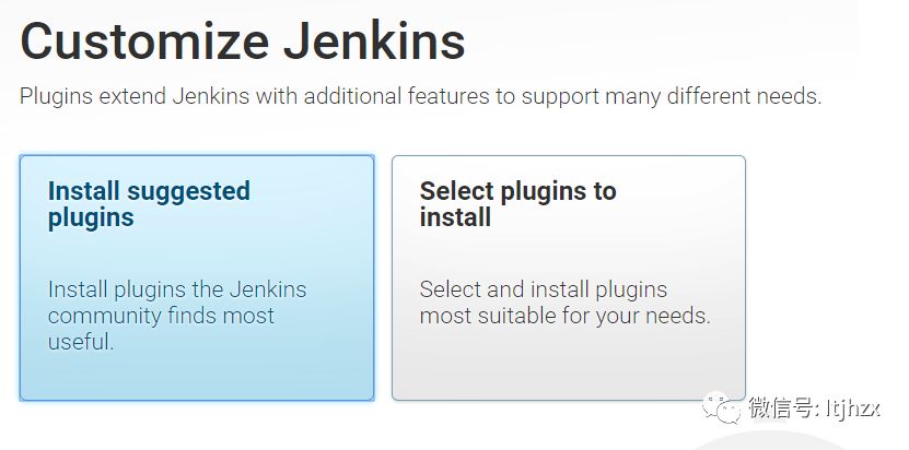 ②接着会提示安装插件,可以选择建议插件,也可以选择自定义要安装插件,进入jenkins后也可以进行插件安装的
