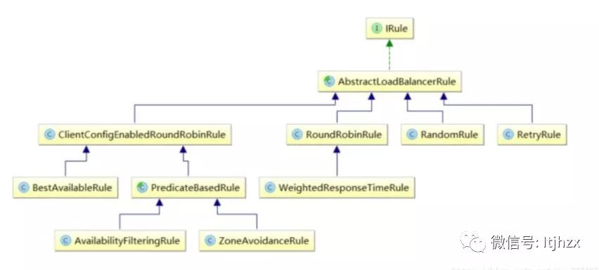 前面我们说到Ribbon会自动的帮助你基于某种规则(如简单轮询,随机连接等)去连接服务提供方得到机器,而IRule就是制定Ribbon要用什么样的规则来实现负载均衡的。