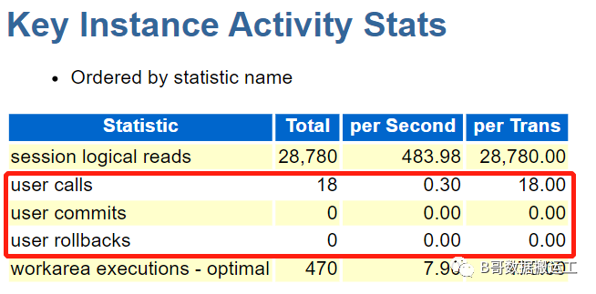 若user calls / (user commits + user rollbacks) 小于30,可以认为应用程序提交过于频繁。