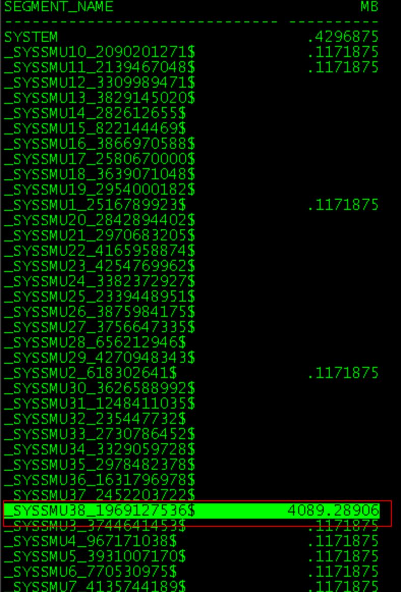 select owner,segment_name,bytes/1024/1024 mb from dba_segments where tablespace_name='UNDOTBS1'