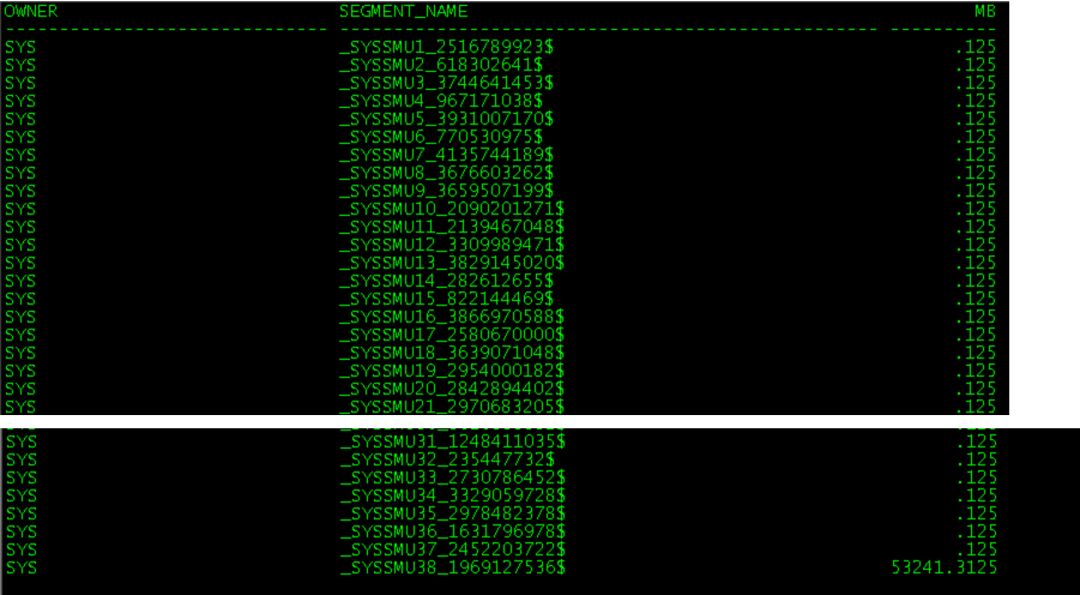 DBA_ROLLBACK_SEGS V$ROLLSTAT V$TRANSACTION V$UNDOSTAT DBA_UNDO_EXTENTS