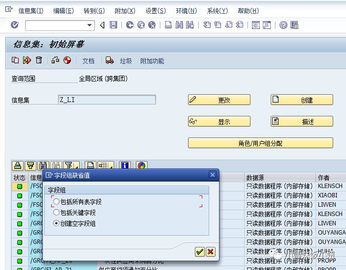 建立一个query需要先建立用户组,再建立信息集。