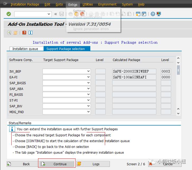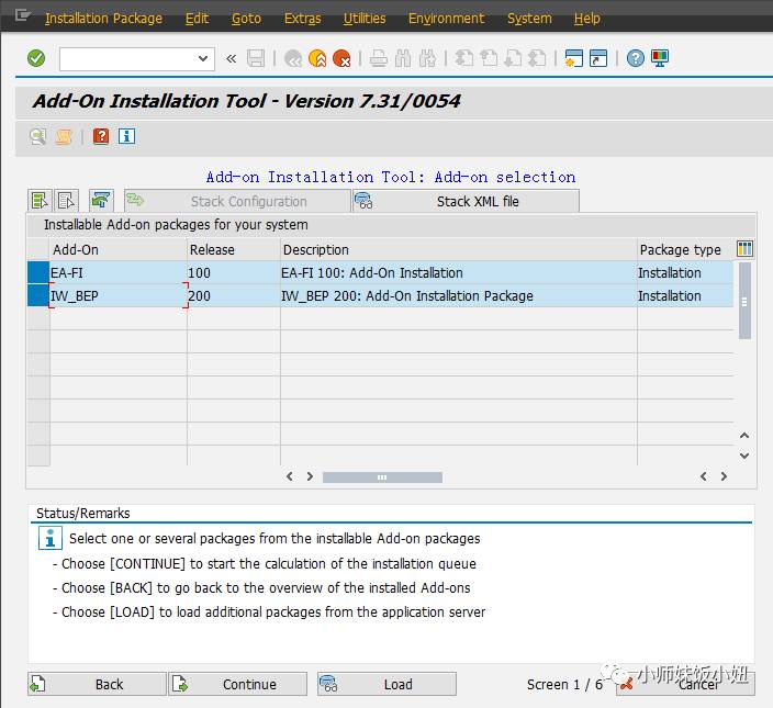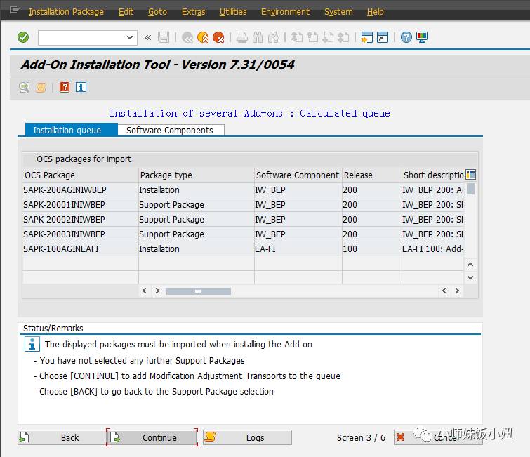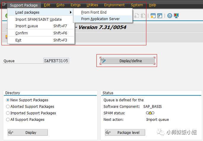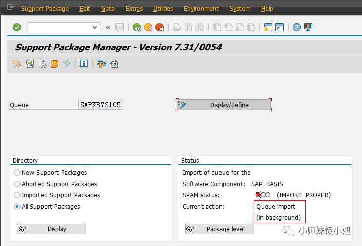 3在安装support package和add-on前,最好把spam/sainst升级到最新的版本。关于当前版本可以在tcode SPAM中看到例如640/0017。后面的就是当前包的号码。然后去sap的网站下载最新的spam包,这些包大多都是CAR文件。可以用sapcar.exe解要所为ATT和 两个文件。他们回解压到Trans\EPS\IN下,但是可以通过spma的support package菜单的load---from frontend来upload这些包,在这个过程中自动decompress那两个文件到EPS/IN文件夹下。