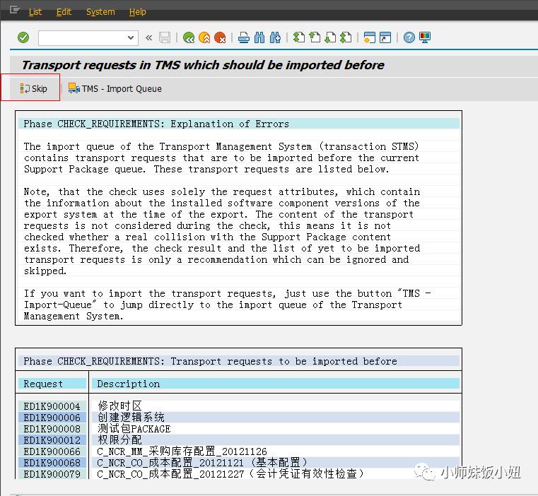 升级前:ECC6.0 EHP6 SP04 升级后:ECC6.0EHP6 SP10