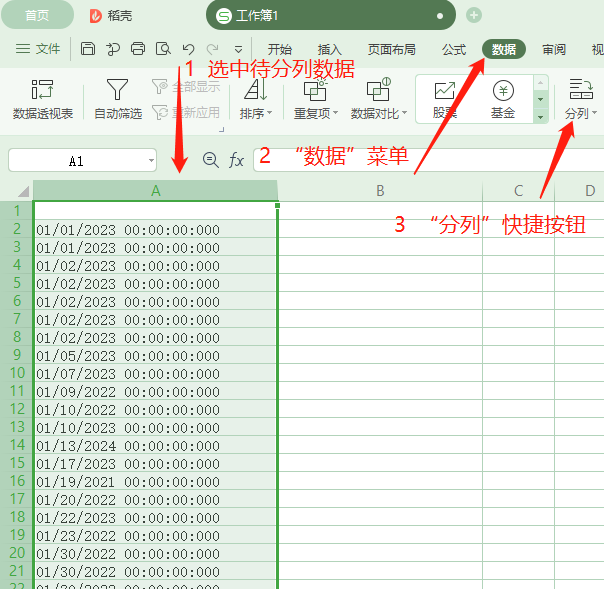 分列的话,会将数据往后面粘贴,如果后面的列本身有数据会被覆盖丢失,所以必须先在后面插入列,数量根据预计的分列数决定