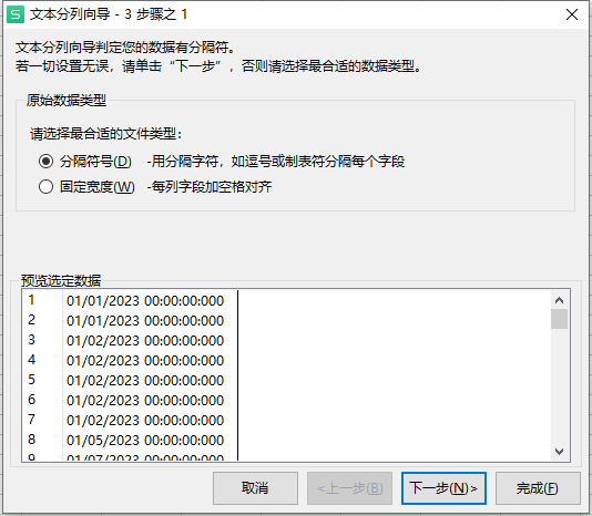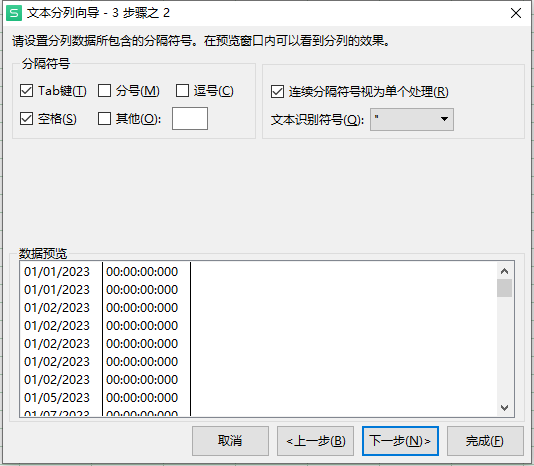 (注意:作为分隔的符号会消失;固定宽度则没有符号会消失)