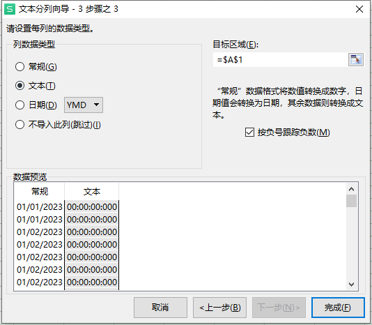 选择数据列,可以单独设置数据格式,默认为“常规”