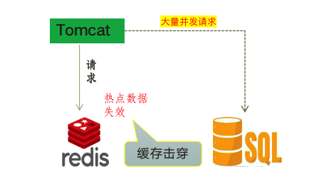 缓存击穿的情况,经常发生在热点数据过期失效时。