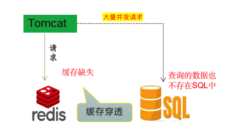 导致请求在访问缓存时,发生缓存缺失,再去访问数据库时,数据库中也没有要访问的数据。