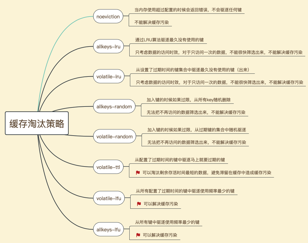 综合以上对Redis缓存八种淘汰策略分析可知,volatile-ttl、volatile-lfu和allkeys-lfu这三种缓存策略能解决缓存污染问题,noeviction策略不能解决缓存污染,而其他策略解决有限。