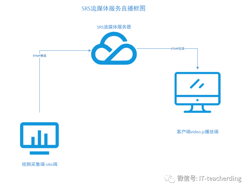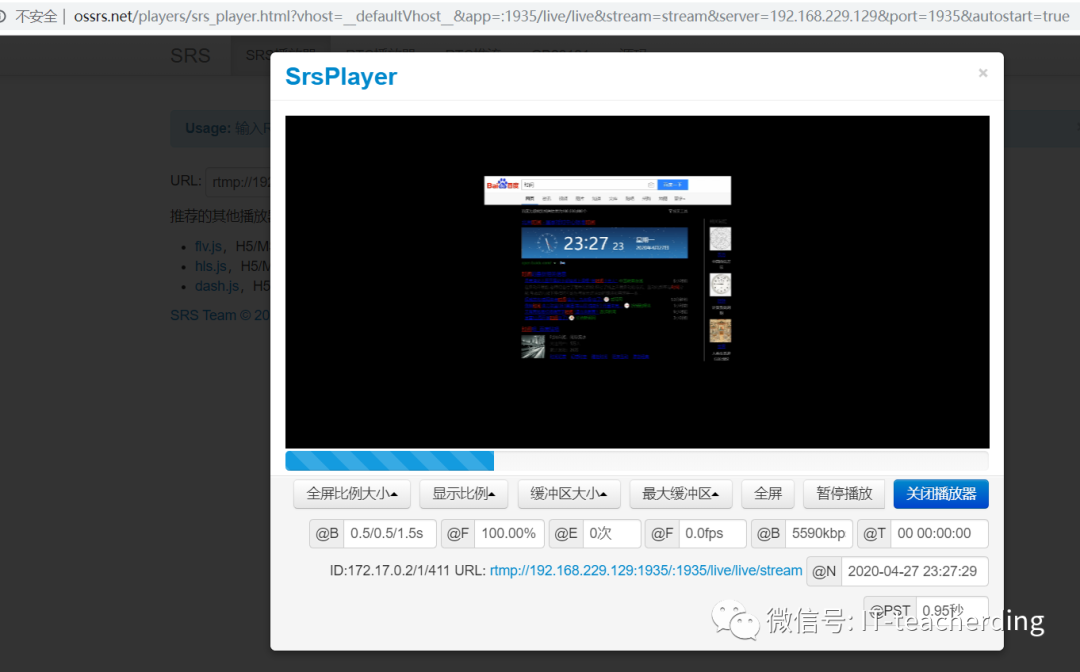 obs端:将采集的视频流以rtmp协议推送至SRS流媒体服务器。