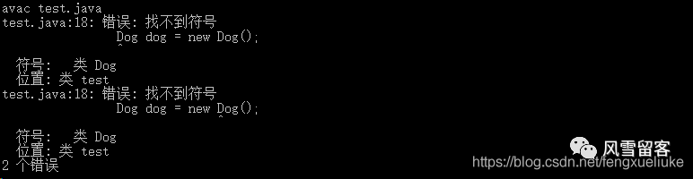 上述代码中Dog此对象并不存在,不过当以上代码使用javac进行编译的时候,就会出现异常,尽管用户输入的可能不是0,可能并不会进入此代码块,但同样会抛出异常,如下图: