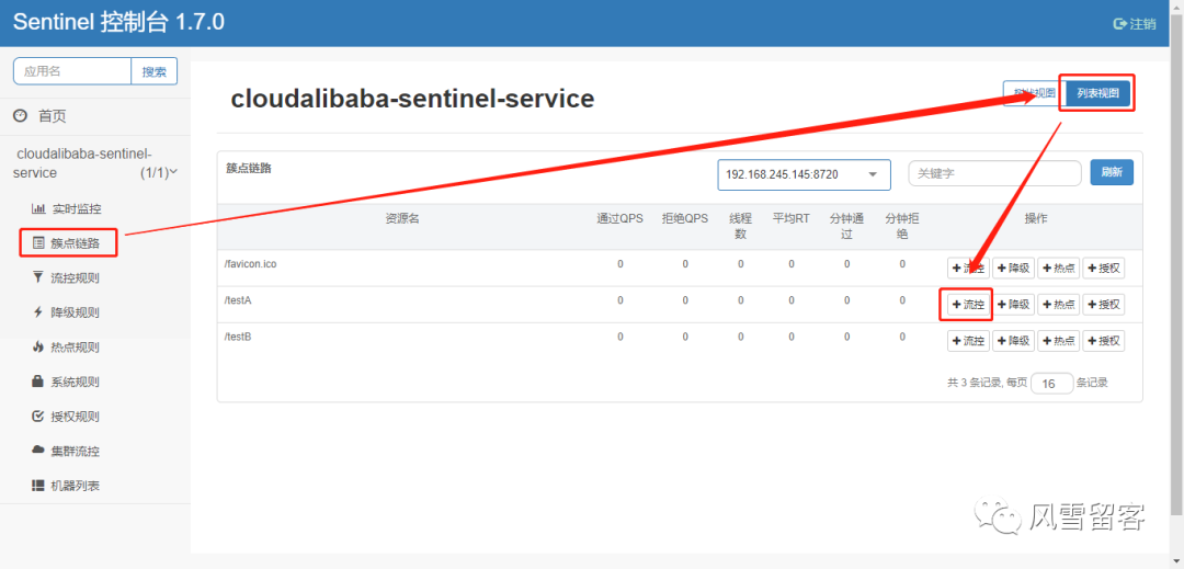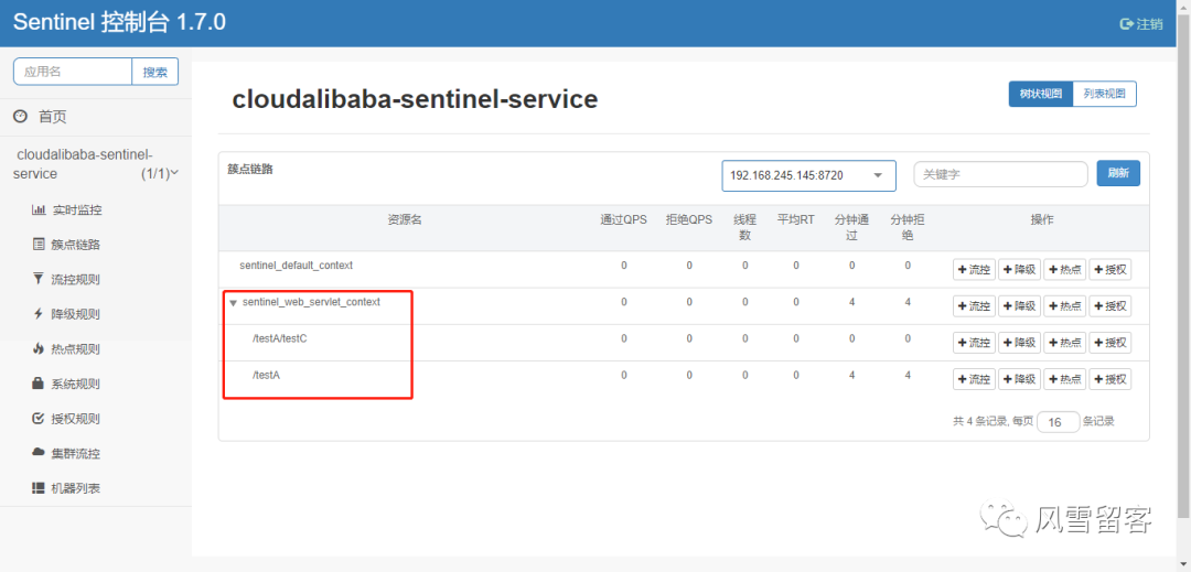 我们发现在sentinel_web_servlet_context节点下有两个节点,/testA和/testA/testC.