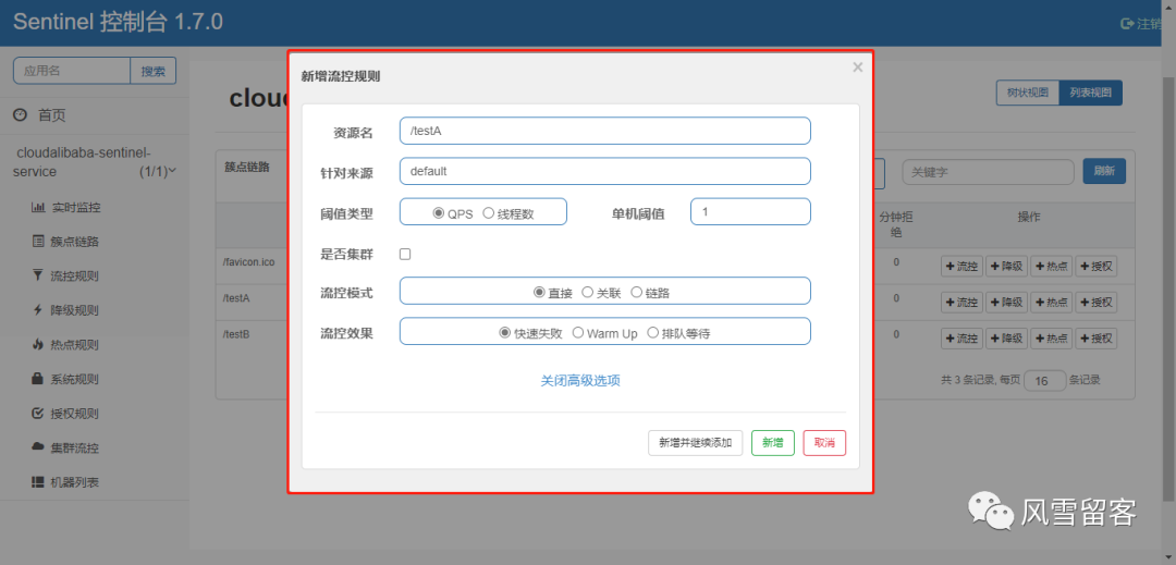 2. 创建QPS流控规则