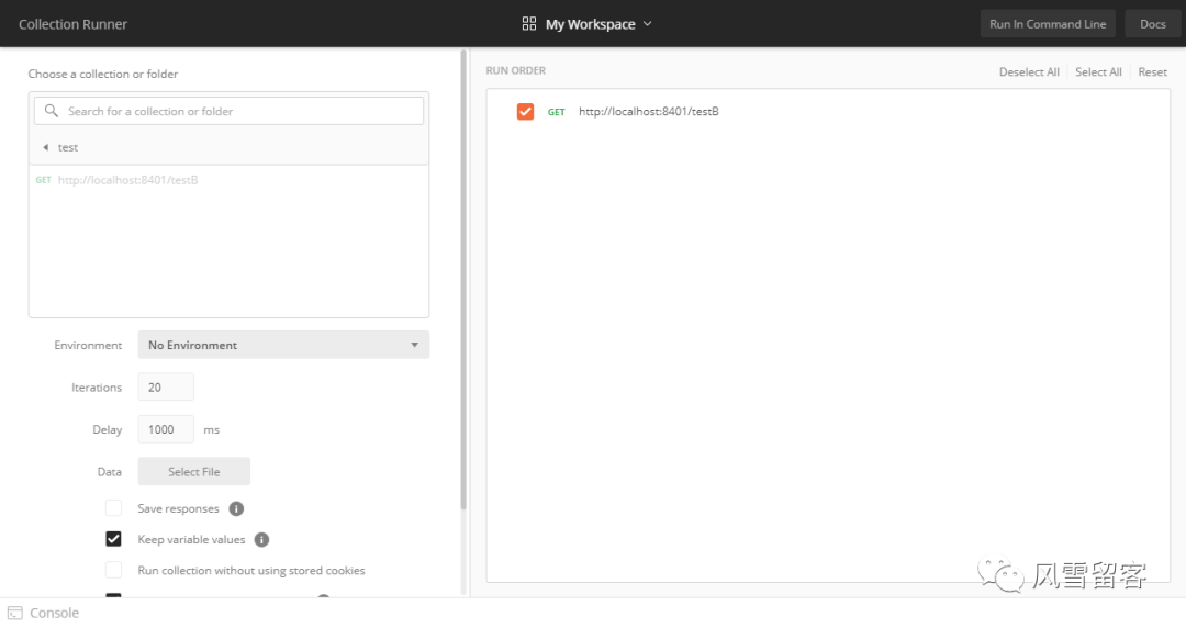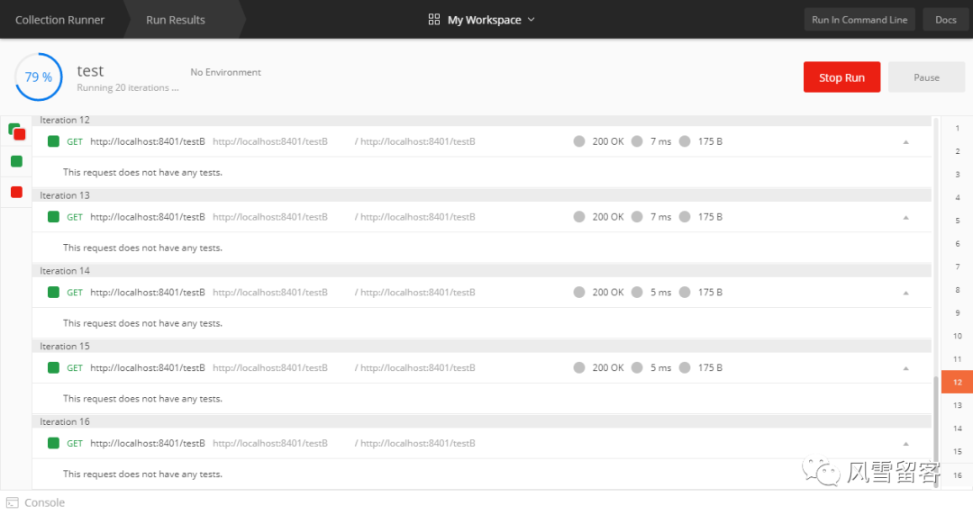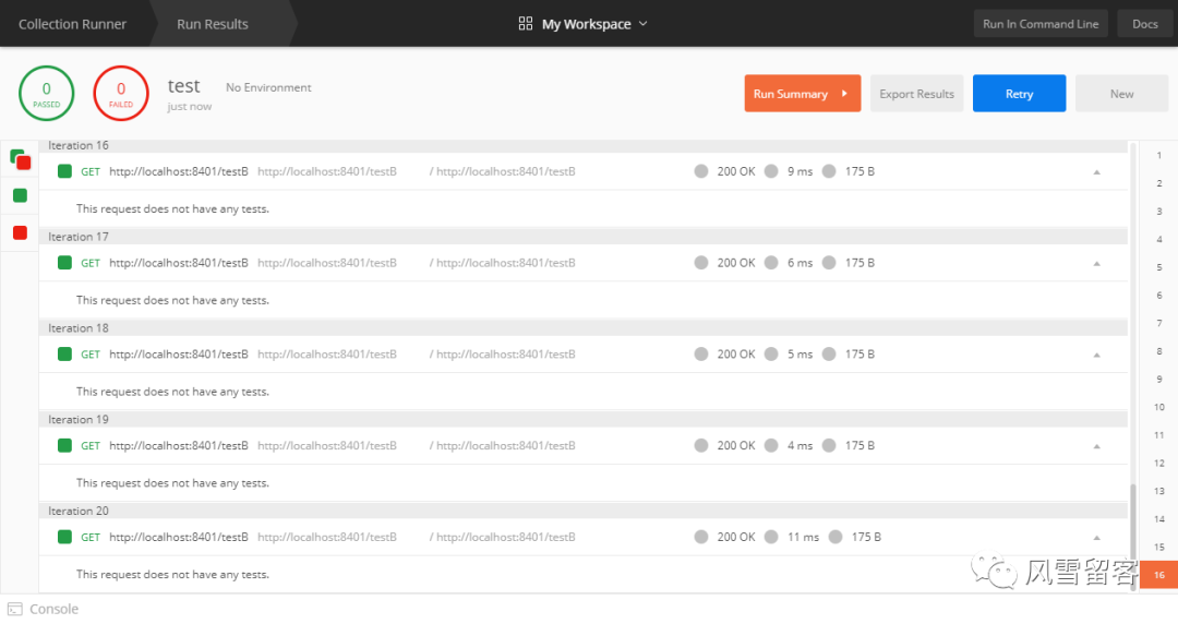 但是如果你在postman运行的同时,打开浏览器进行访问,就会出错.