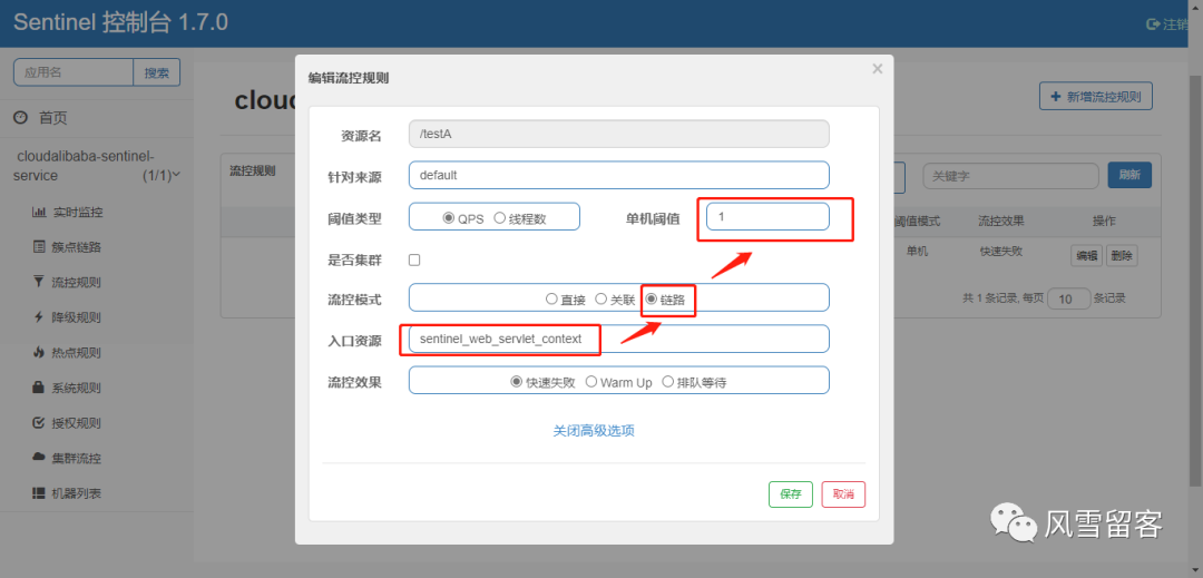 4. 创建链路流控规则
