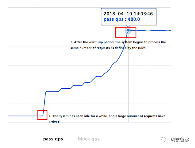 )方式,即预热/冷启动方式。当系统长期处于低水位的情况下,当流量突然增加时,直接把系统拉升到高水位可能瞬间把系统压垮。通过"冷启动",让通过的流量缓慢增加,在一定时间内逐渐增加到阈值上限,给冷系统一个预热的时间,避免冷系统被压垮。