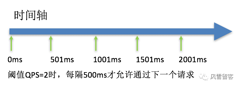 )方式会严格控制请求通过的间隔时间,也即是让请求以均匀的速度通过,对应的是漏桶算法。它的中心思想是,以固定的间隔时间让请求通过。当请求到来的时候,如果当前请求距离上个通过的请求通过的时间间隔不小于预设值,则让当前请求通过;否则,计算当前请求的预期通过时间,如果该请求的预期通过时间小于规则预设的 timeout 时间,则该请求会等待直到预设时间到来通过(排队等待处理);若预期的通过时间超出最大排队时长,则直接拒接这个请求。