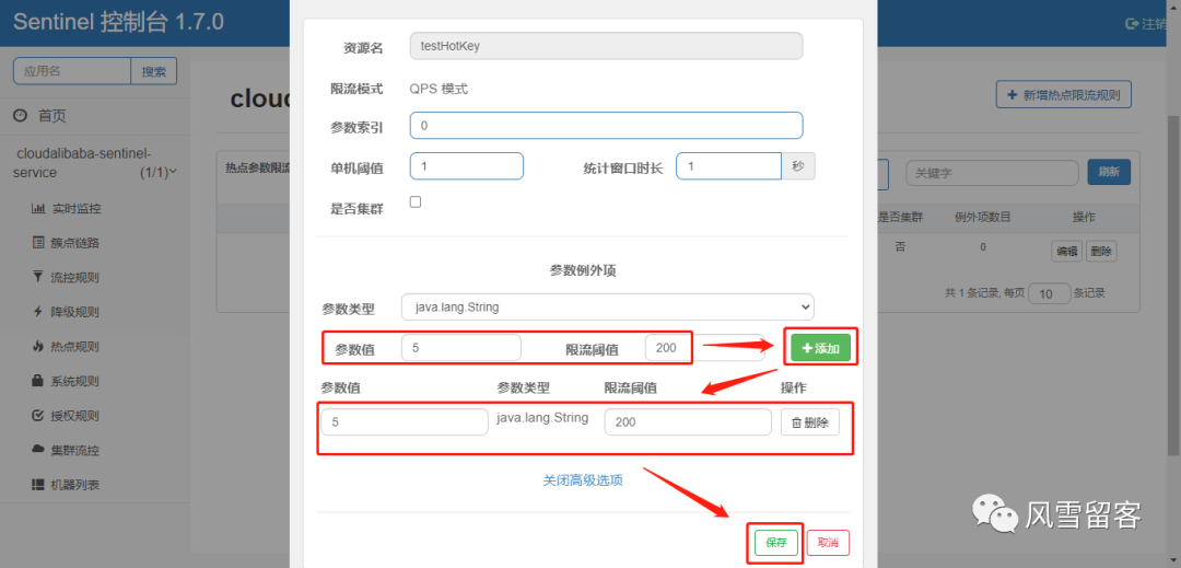 配置流控规则: