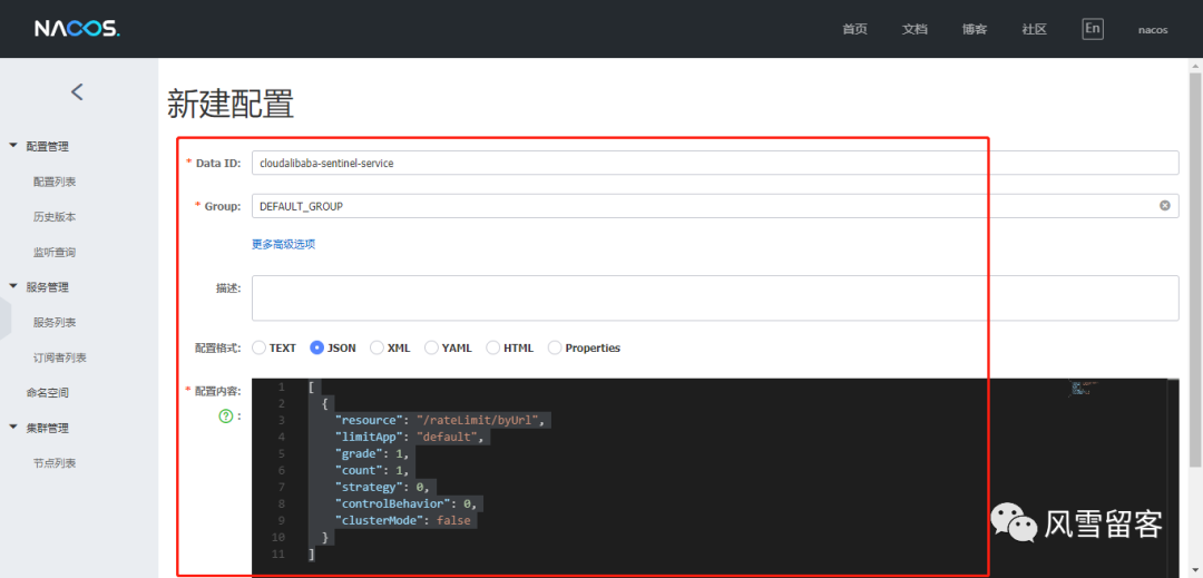 ⑸. 添加Nacos业务规则配置: