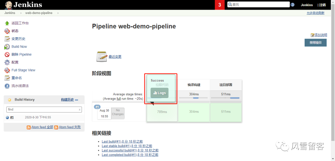还可以查看每一个阶段的日志: