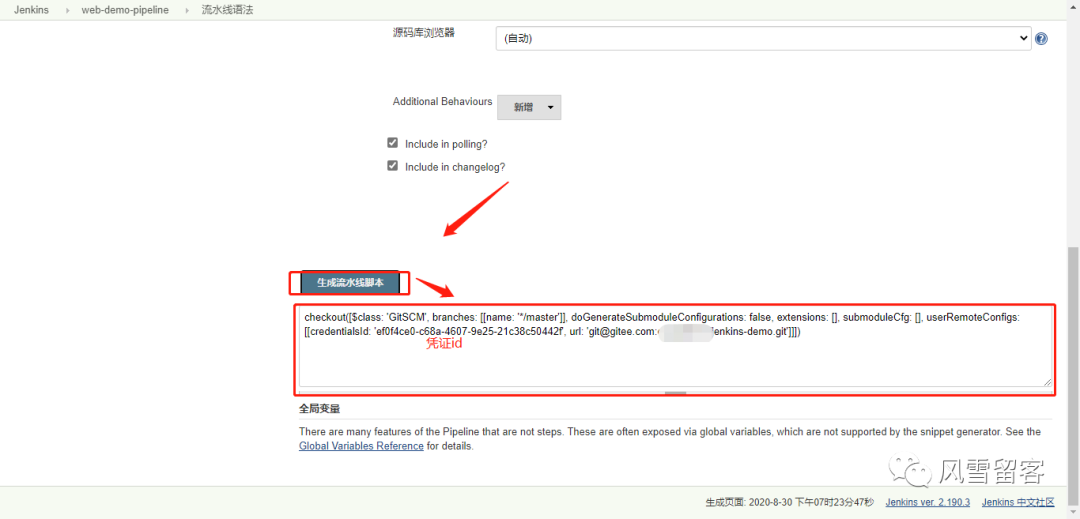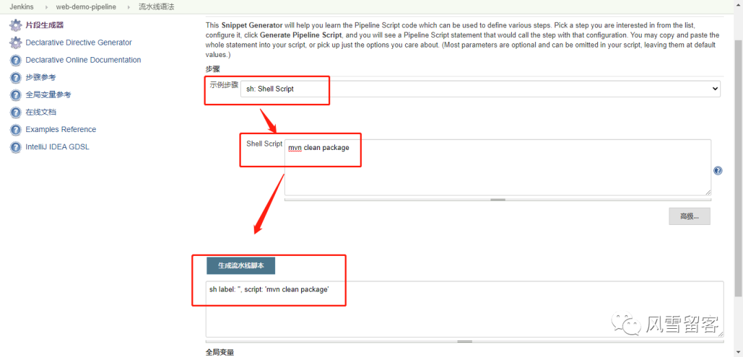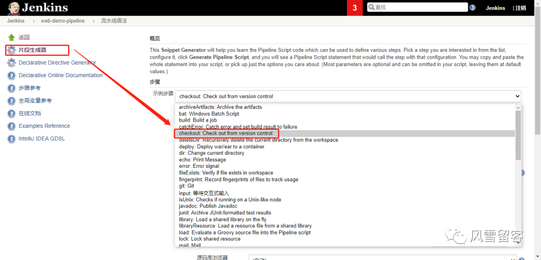 我们不用刻意的去学习如何编写声明式的Pipeline,可以通过工具来生成对应的代码: