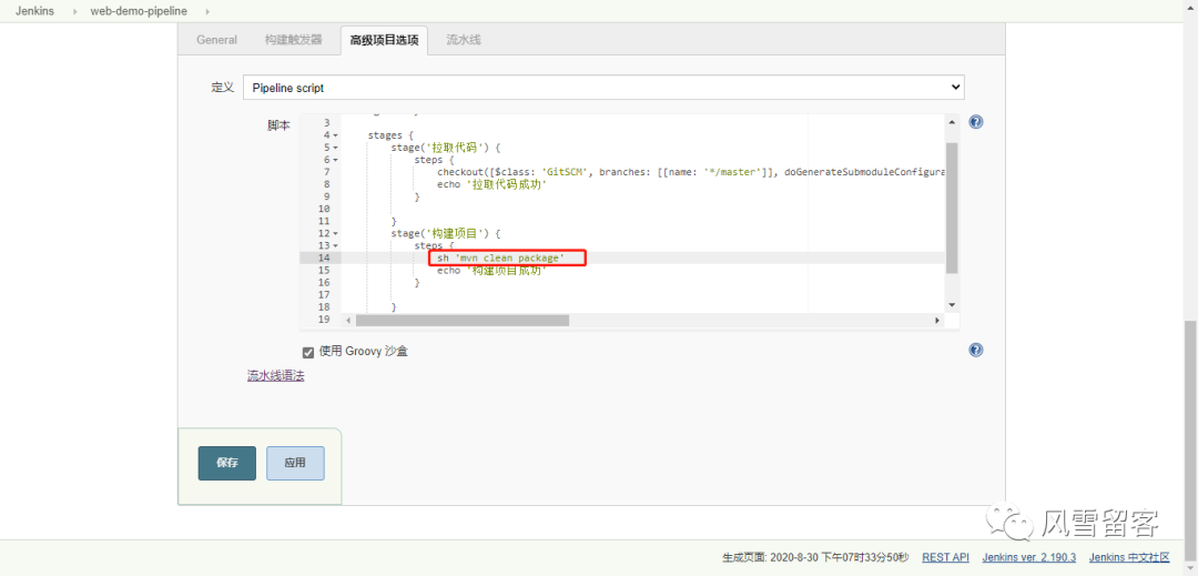 Jenkinsfile Pipeline 这种方法)。