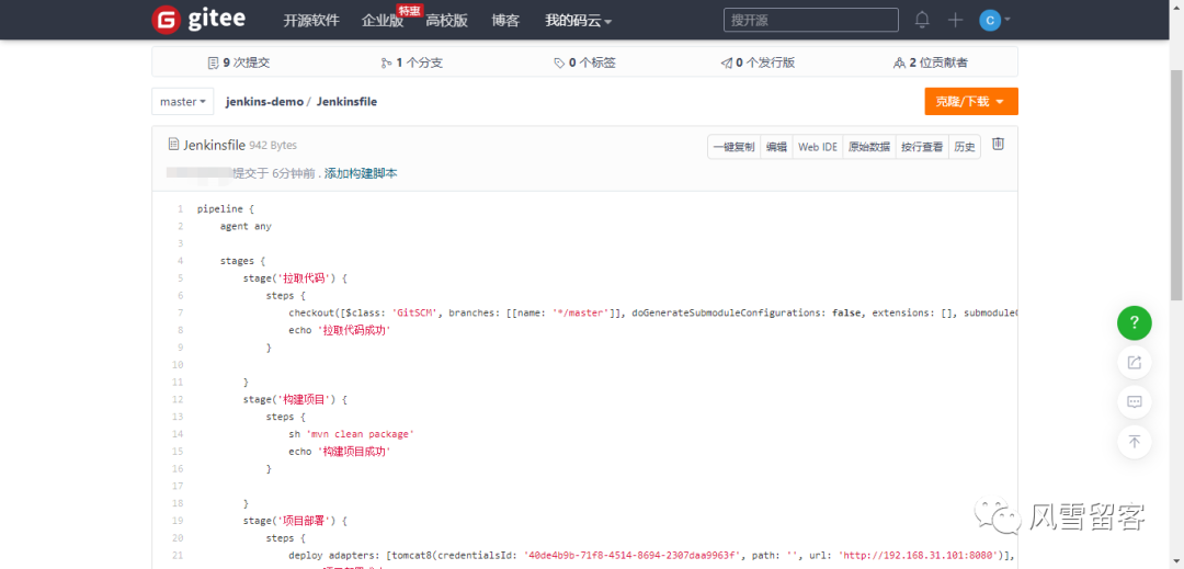 2. 把Jenkinsfile上传到码云: