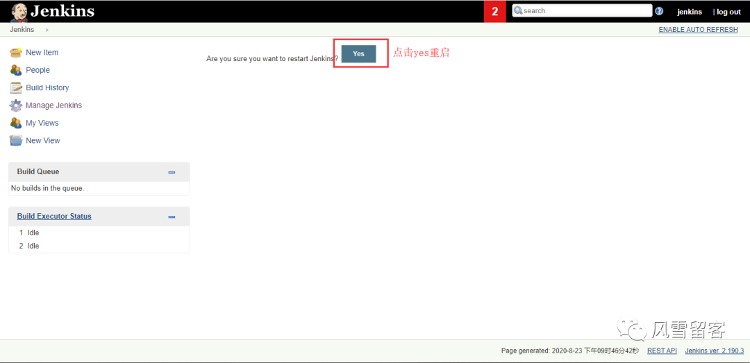Sumbit后,在浏览器输入:http://{ip}:8888/restart ,重启Jenkins。