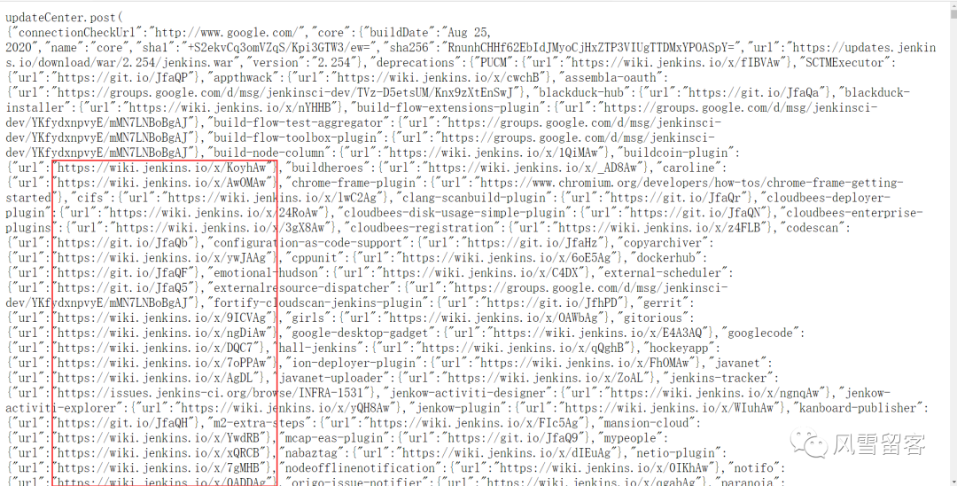 目测第三个方法没啥用,我们可以打开http://mirror.esuni.jp/jenkins/updates/update-center.json这个网址查看内容: