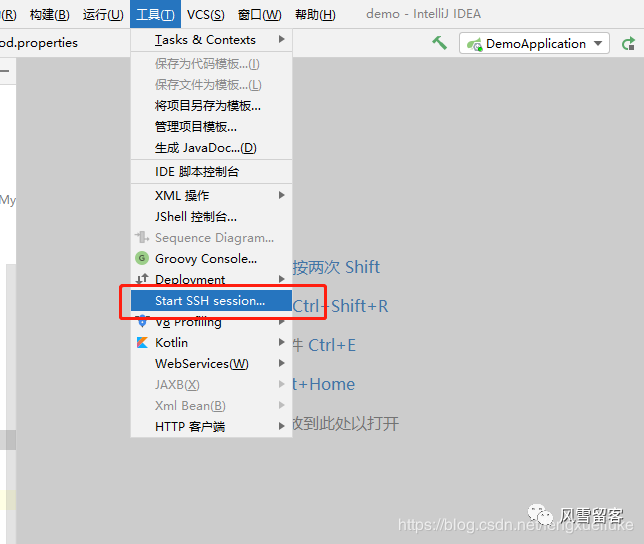 一. 打开idea的工具菜单,选择ssh功能.