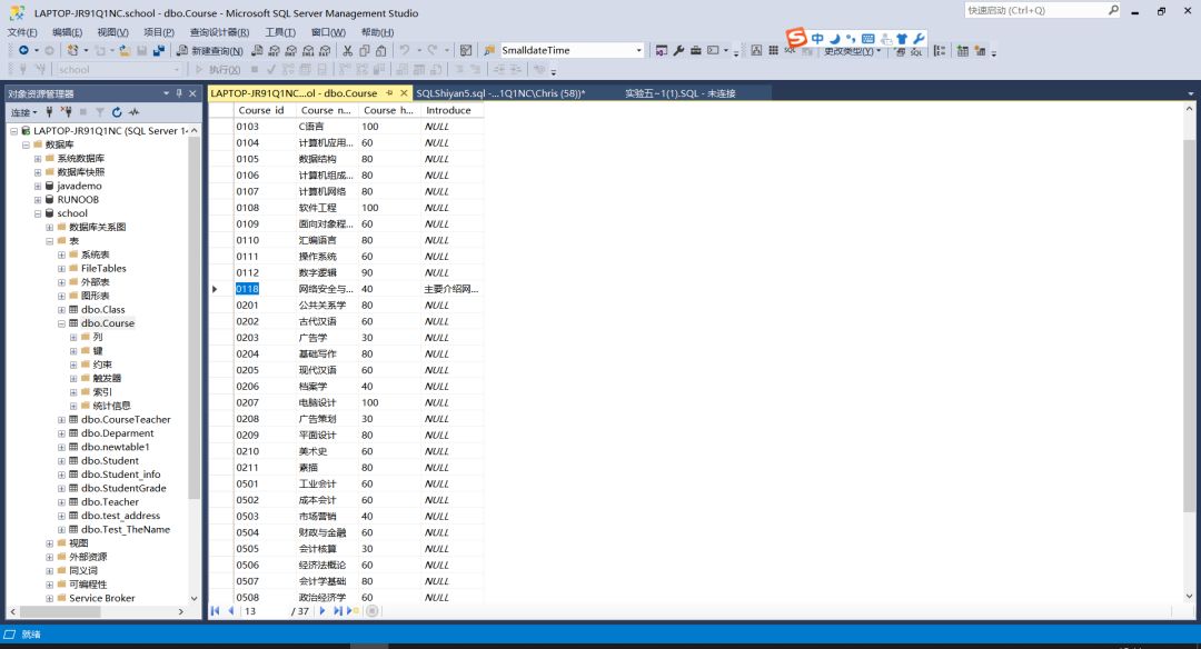 --1insert into coursevalues('0118','网络安全与防火墙','40','主要介绍网络的安全与主要的防火墙软件')