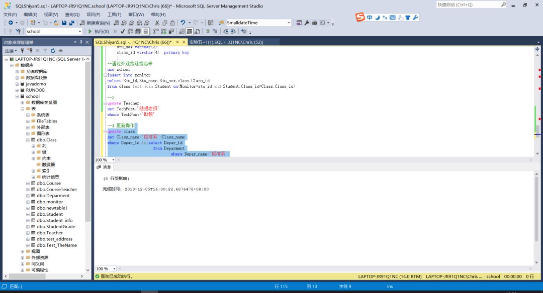 4、在所有经济系班级的名称前加上“经济系”三个字。(class上的触发器可能造成不能正确更新,怎么办?)