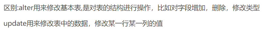 Alter是修改整个表的定义结构;update是专门对表中的元组进行修改更新。用一个比喻的手法表示就是alter是表这个建筑的总设计师而update是里面的施工员,对于建筑里的一些细节形象进行施工。同理,drop是删除结构,delete是删除数据——drop就是爆破建筑的总设计师,而delete就是拆墙的小工。