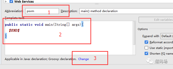 黑体为我们需要输入的内容,灰色括号中的为Tab后的内容,绿色的+号可以新增自定义的Live Templates,如图: