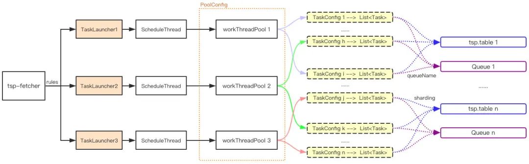 TaskLauncher基于 TaskConfig 维度设置任务的调度队列(queueName) ,对任务量大的 TaskConfig 的任务队列进行隔离,任务量少的 TaskConfig 则可以共用一个调度队列。