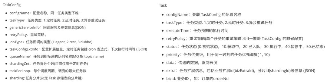 Task: 基本任务单元,一个 Task 代表系统会对业务方发起一次调用,延时任务中用户通过接口提交 ,定时任务是 TSP 周期性生成。
