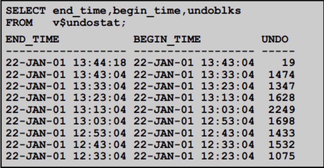 -UNDO_RETENTION 规定多长时间内,数据不能被覆盖。