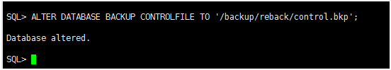 SQL> ALTER DATABASEBACKUP CONTROLFILE TO '/backup/reback/control.bkp';将控制文件备份到/backup/reback/下,备份的后缀名无所谓