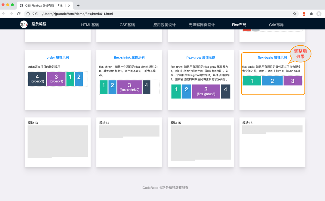 <article class="article ant-col ant-col-xs-24 ant-col-sm-12 ant-col-md-12 ant-col-lg-12 ant-col-xl-6"><div class="card">=<div class="container title justify-content-center">flex-basis 属性示例</div><div class="container ft12 ">flex-basis: 如果所有项目的属性定义了在分配多余空间之前,项目占据的主轴空间(main size)</div><div class="container-dashed wrap align-content-between"><div class="box box-item1 grow basis">1</div><div class="box box-item2 grow3 basis-auto">2</div><div class="box box-item3 grow basis">3</div></div></div></article>