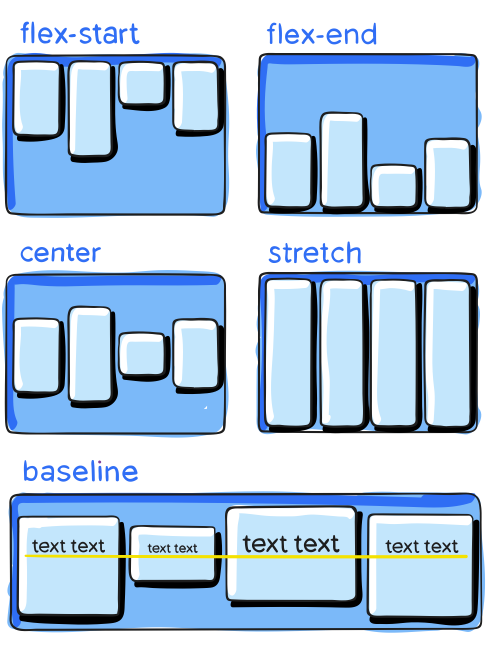 <style type="text/css">.container {align-items: stretch | flex-start | flex-end | center | baseline | first baseline | last baseline | start | end | self-start | self-end + ... safe | unsafe;}</style>