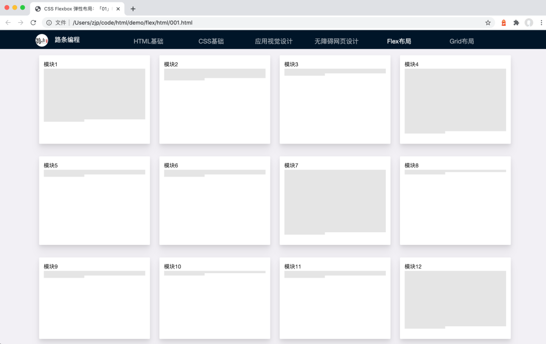 项目将沿着水平主轴(main axis)从主轴的开始位置(main-start)到结束位置(main-end)或交叉轴(cross axis)从交叉轴的开始位置(cross-start)到结束位置(cross-end)进行布局。项目默认按主轴排列,后继文章我们会详细介绍 flex 相关属性及使用方法。重要提示:示例效果预览,请访问 https://www.icoderoad.com , 完整代码查看及下载,请访问 https://github.com/icoderoad/demo。