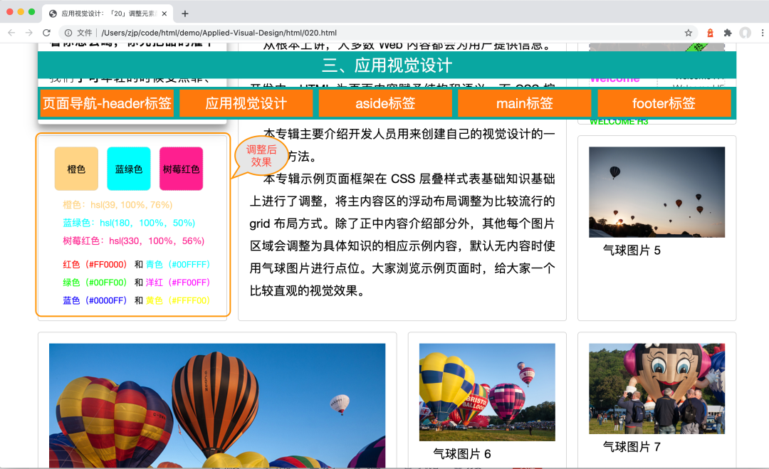 <li><div class="img-wrap"><span class="span-round orange">橙色</span><span class="span-round cyan">蓝绿色</span><span class="span-round raspberry">树莓红色</span><div class="mt-10"><p style="color: hsl(39, 100%, 76%);" class="p-hue">橙色:hsl(39, 100%, 76%)</p><p style="color: hsl(180, 100%, 50%);" class="p-hue">蓝绿色:hsl(180,100%,50%)</p><p style="color: hsl(330, 100%, 56%);" class="p-hue">树莓红色:hsl(330,100%,56%)</p></div></div><div class="mt-10"><p style="font-size: 16px;"><span style="color:#FF0000;">红色(#FF0000)</span> 和 <span style="color:#00FFFF">青色(#00FFFF)</span></p><p style="font-size: 16px;"><span style="color:#00FF00;">绿色(#00FF00)</span> 和 <span style="color:#FF00FF;">洋红(#FF00FF)</span></p><p style="font-size: 16px;"><span style="color:#0000FF;">蓝色(#0000FF)</span> 和 <span style="color:#FFFF00;">黄色(#FFFF00)</span></p></div></li>