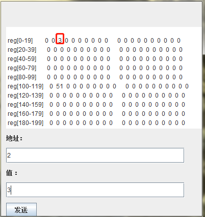 上面将Byte数组的第3个字节修改为3。同时,观察客户端,客户端的寄存器数据也更新了。