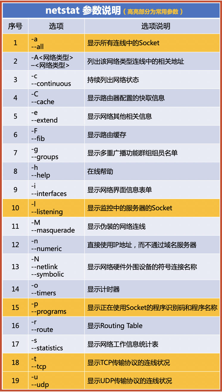 netstat [参数]